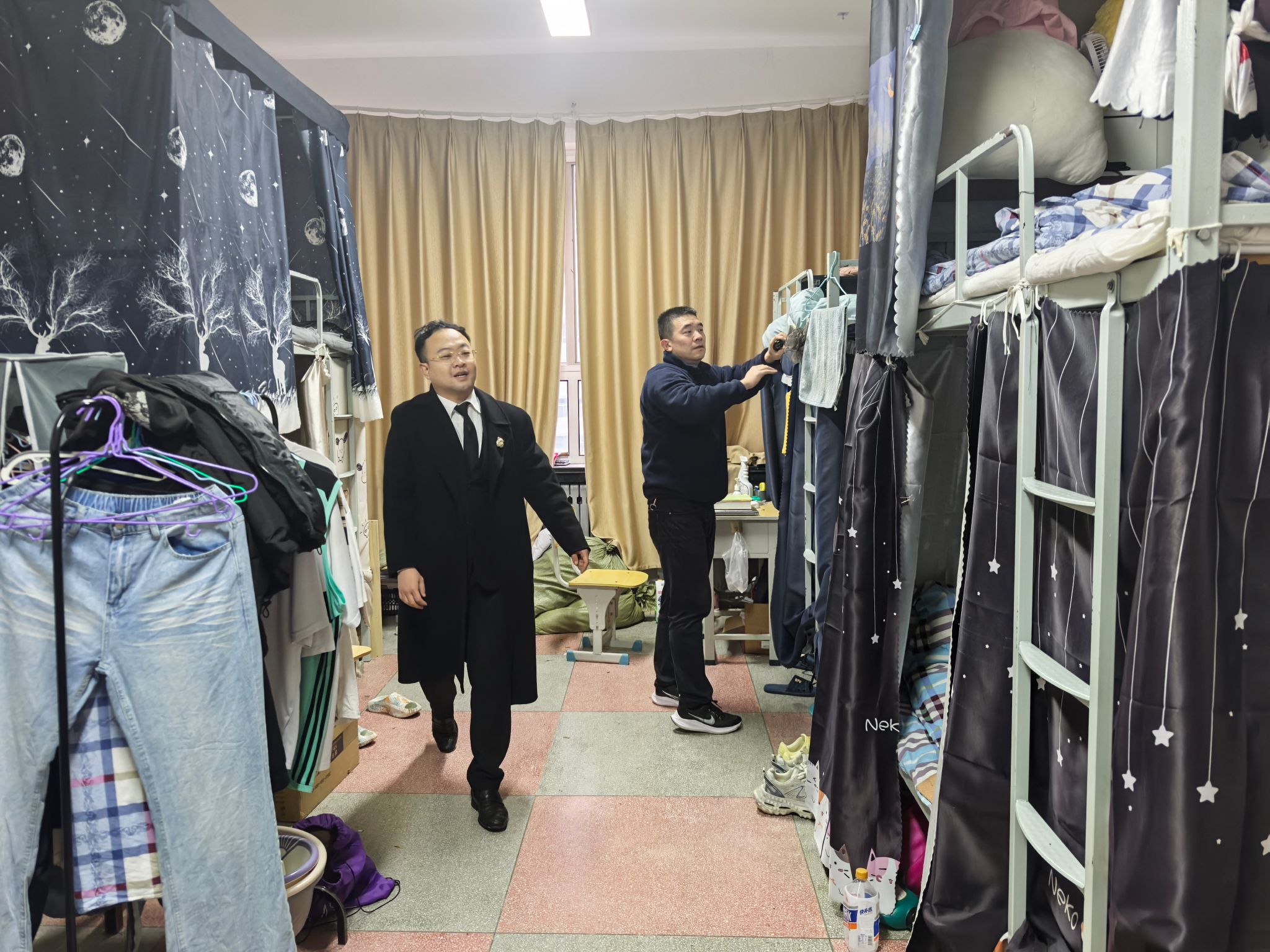 10月24日,学校安稳办(保卫处)牵头,组织党委学生工作部(处)、教务处、后勤管理处及各二级学院对实习学生公寓安全进行安全专项检查。