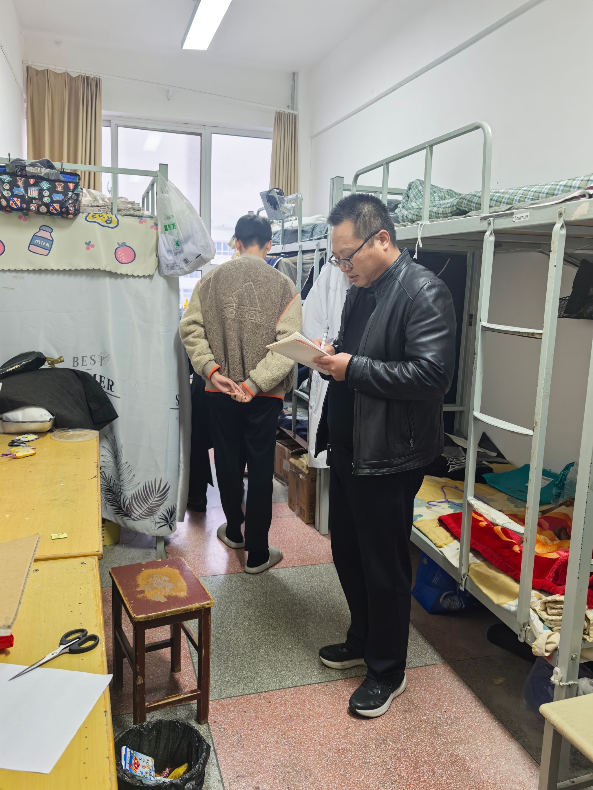 本次检查,严格对照《甘肃省教育厅等五部门关于印发校园安全隐患排查清单的通知》中《消防安全风险隐患排查清单》,采取逐房间、逐部位“地毯式”检查,确保“不留死角、不漏隐患”,重点检查了实习学生宿舍私拉乱接电线、违规使用大功率电器、电热毯和安全出口、疏散通道摆放杂物以及宿舍内卫生状况。