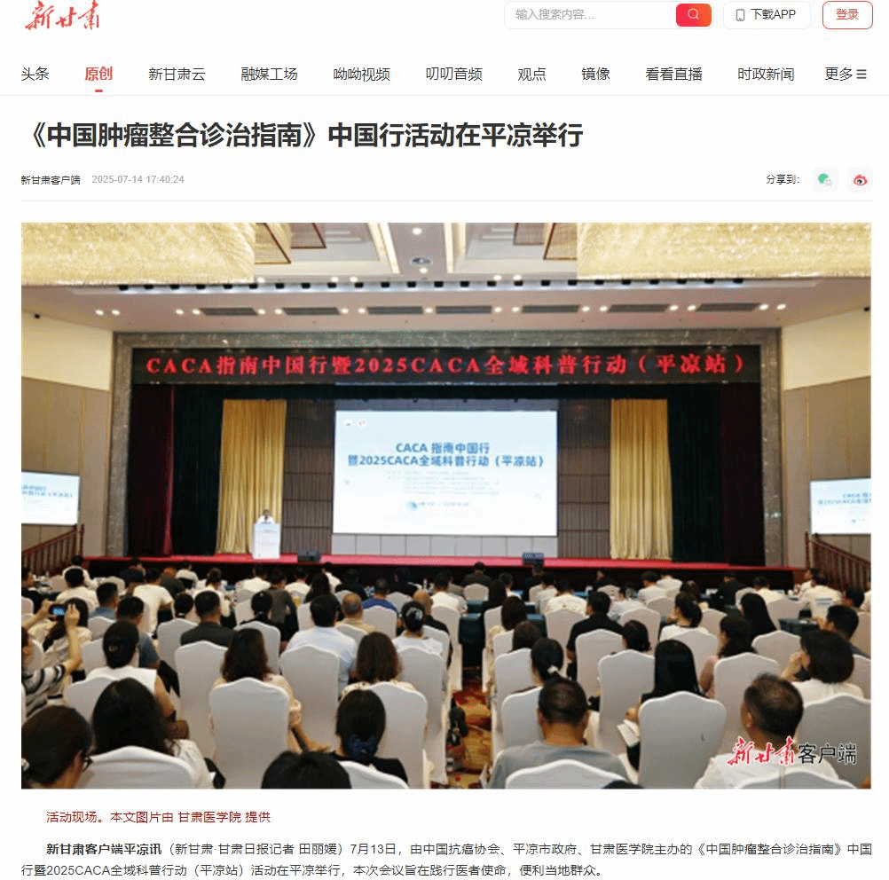 7月13日,由中国抗癌协会、平凉市政府、甘肃医学院主办的《中国肿瘤整合诊治指南》中国行暨2025CACA全域科普行动(平凉站)活动在平凉举行,本次会议旨在践行医者使命,便利当地群众。
