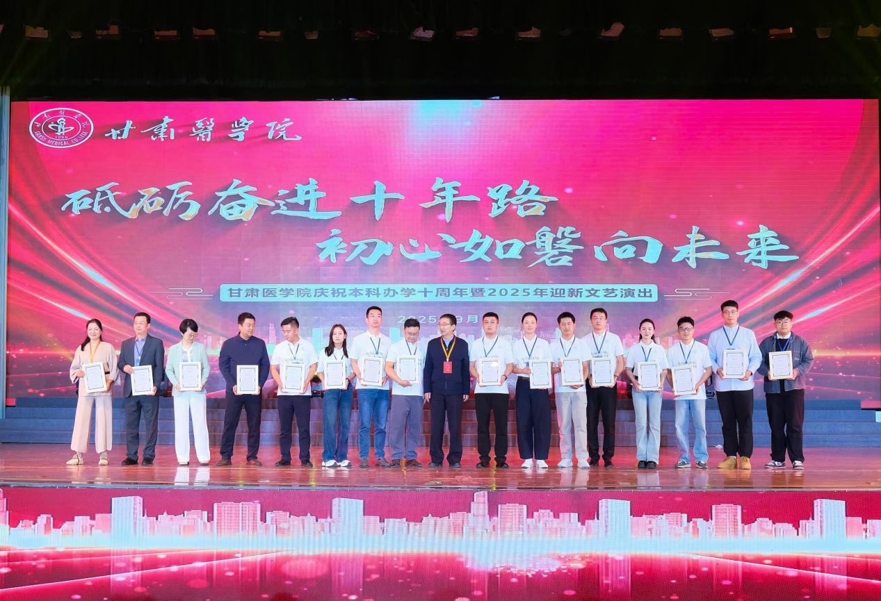 9月26日,甘肃医学院本科办学十周年暨2025年迎新文艺演出在学校体育馆举行。甘肃中医药大学、宁夏医科大学、陇东学院、甘肃省卫生职业技术学院、兰州科技职业学院等兄弟院校领导、学校在家领导、全体处科级干部,学校退休干部、教师代表,校友和师生代表欢聚一堂,共同回顾十年砥砺奋进的办学历程,展望未来发展的崭新蓝图,并以精彩纷呈的文艺节目欢迎2025级新同学的到来。