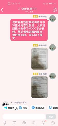 新冠肺炎疫情防控期间,传统教学模式无法正常开展,根据省教育厅和学院相关文件指示,本着“停课不停学”原则,学院鼓励老师积极探索线上教学模式。公共课教学部基础化学教研室白莹老师积极准备,学习线上教学技能,经过多次尝试,主要采取“MOOC平台+QQ群”模式,进行线上教学,达到了较好的学习效果。