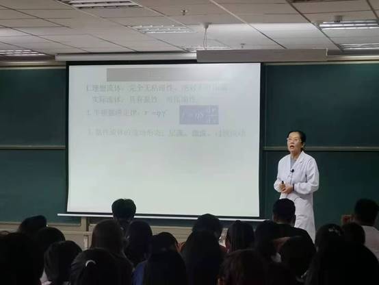 本次公开教学由数理教研室梁金玲老师承担,讲授内容为泊肃叶定律。梁金玲老师将多媒体课件与传统板书教学相结合,思路清晰、推导严密、逻辑性强、环环相扣,引导学生在深入讨论和思考后自己得出结论。在讲授中,梁金玲老师还注重将知识传授与价值引领有机融合,引导学生学习科学家百折不挠的品格和勇于探索的精神,提升课程思政育人实效。