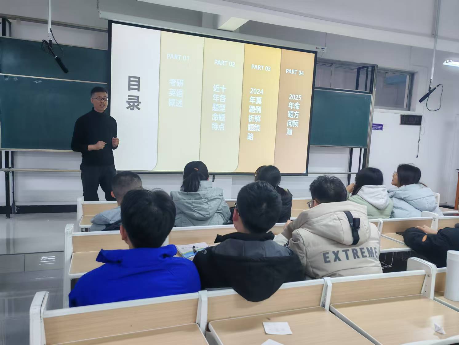 为帮助考研学生深入了解考研政策,分析考研英语真题及解题技巧,12月15日、19日,公共课教学部英语教研室安排经验丰富的教师开展了两次考研英语专题讲座。