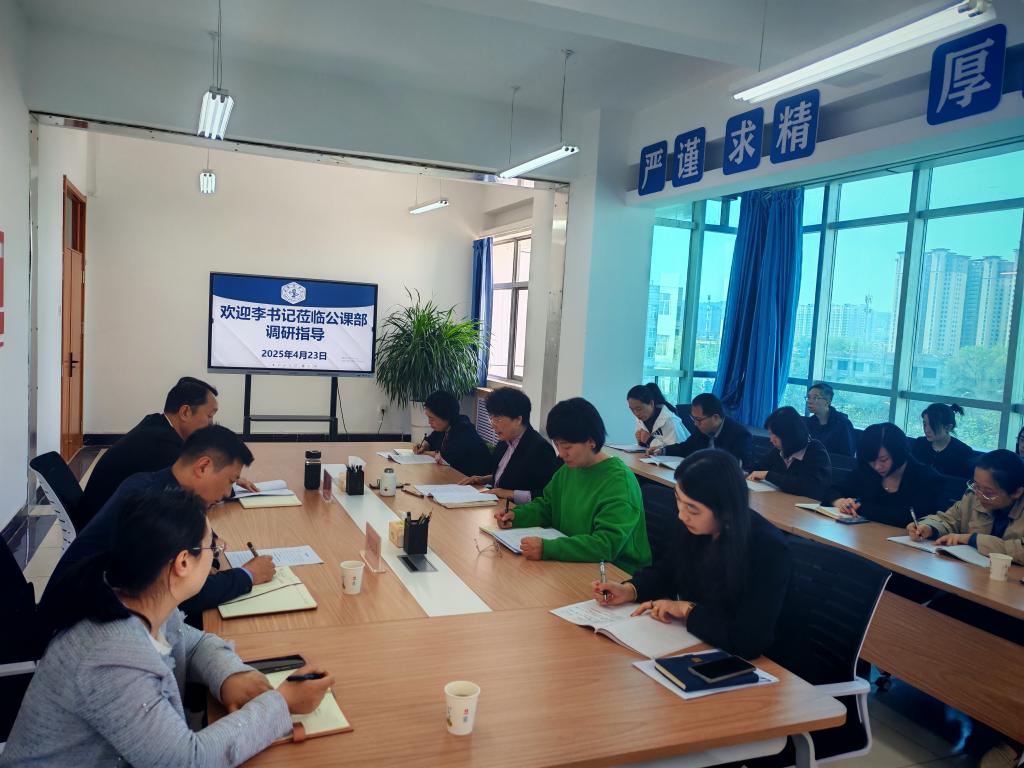 4月23日上午,学校党委副书记李岳一行莅临公课部,重点围绕“十四五”工作成效和科学编制“十五五”发展规划工作进行调研指导,组织部(人事处)部长周思洋、校办人员陪同调研。公课部行政人员、教研室主任及部分教师代表参加了会议。
