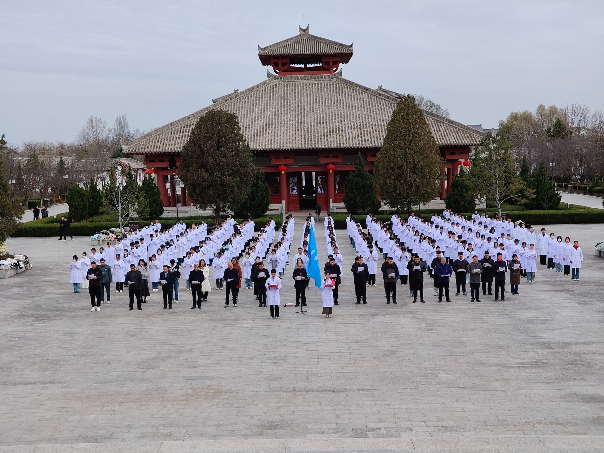 为进一步传承弘扬皇甫谧中医文化,深化校地合作,推动皇甫谧办学特色、中医药事业与康养产业融合发展。11月16日,在院长刘君奇、党总支书记王志江的带领下,皇甫谧学院组织相关医疗专家、全体教师及2025级新生共计269人,赴灵台县开展拜谒研学及“送医送药送健康”义诊活动。活动由灵台县中医中药及文旅康养产业链办公室统筹协调,县皇甫谧文化园、县皇甫谧中医针灸传承创新示范中心等单位承办。