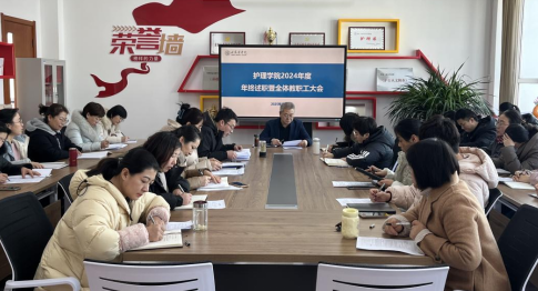 1月15日下午,护理学院召开2024年度年终考核述职暨全体教职工大会。护理学院党总支书记闫奋毅、副院长康姮、各部门负责人及护理学院全体教职工出席会议,会议由办公室主任刘磊主持。