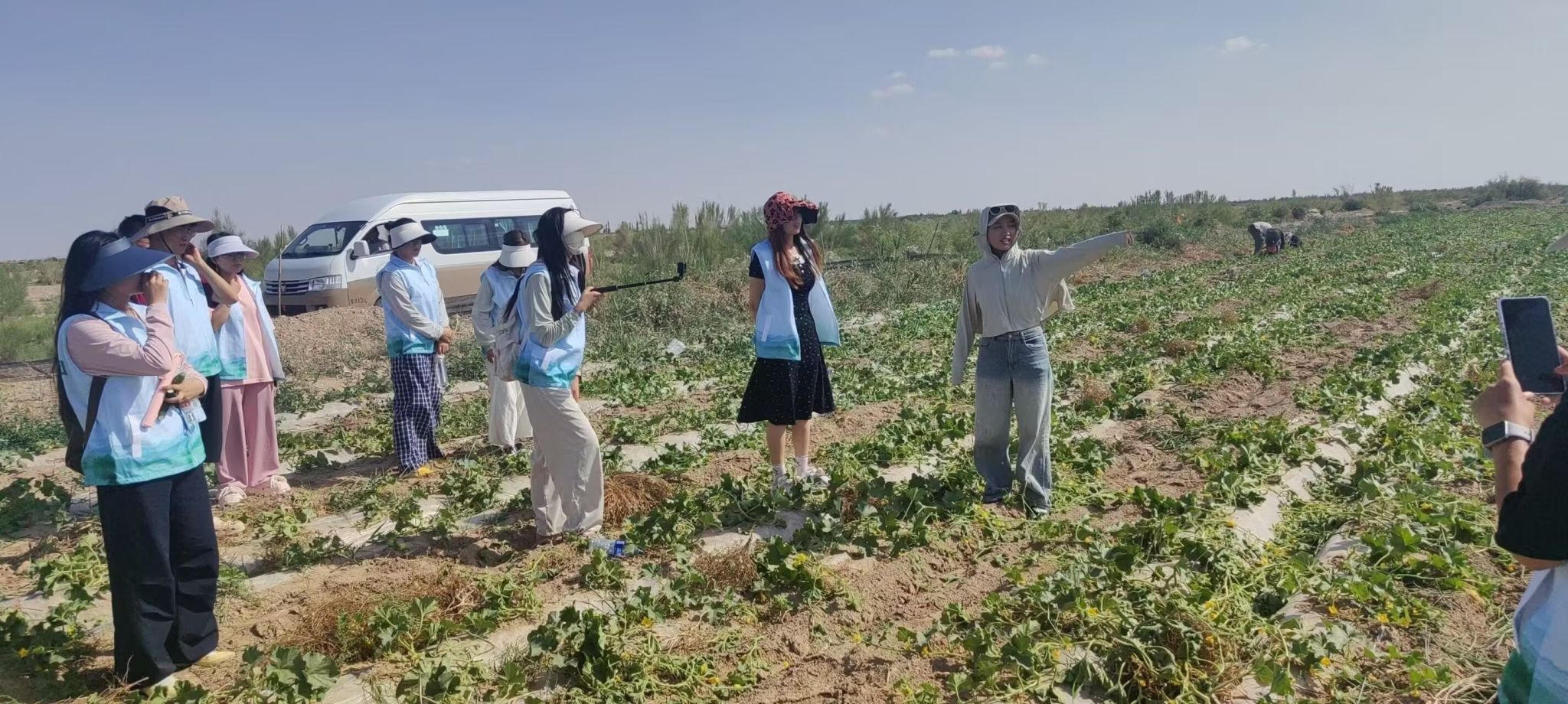 (队员们在“新农人”带领下参观当地甜瓜种植基地)