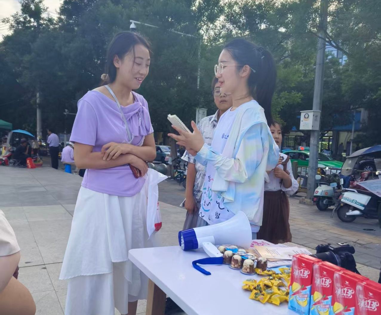 图为实践队员为家长用宣传手册进行 相关知识的科普。李冬梅 供图