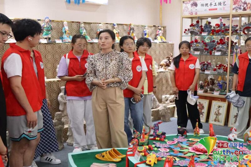 图为团队成员向讲解员老师了解学习刺绣文化的场景。 朱帅琦 供图