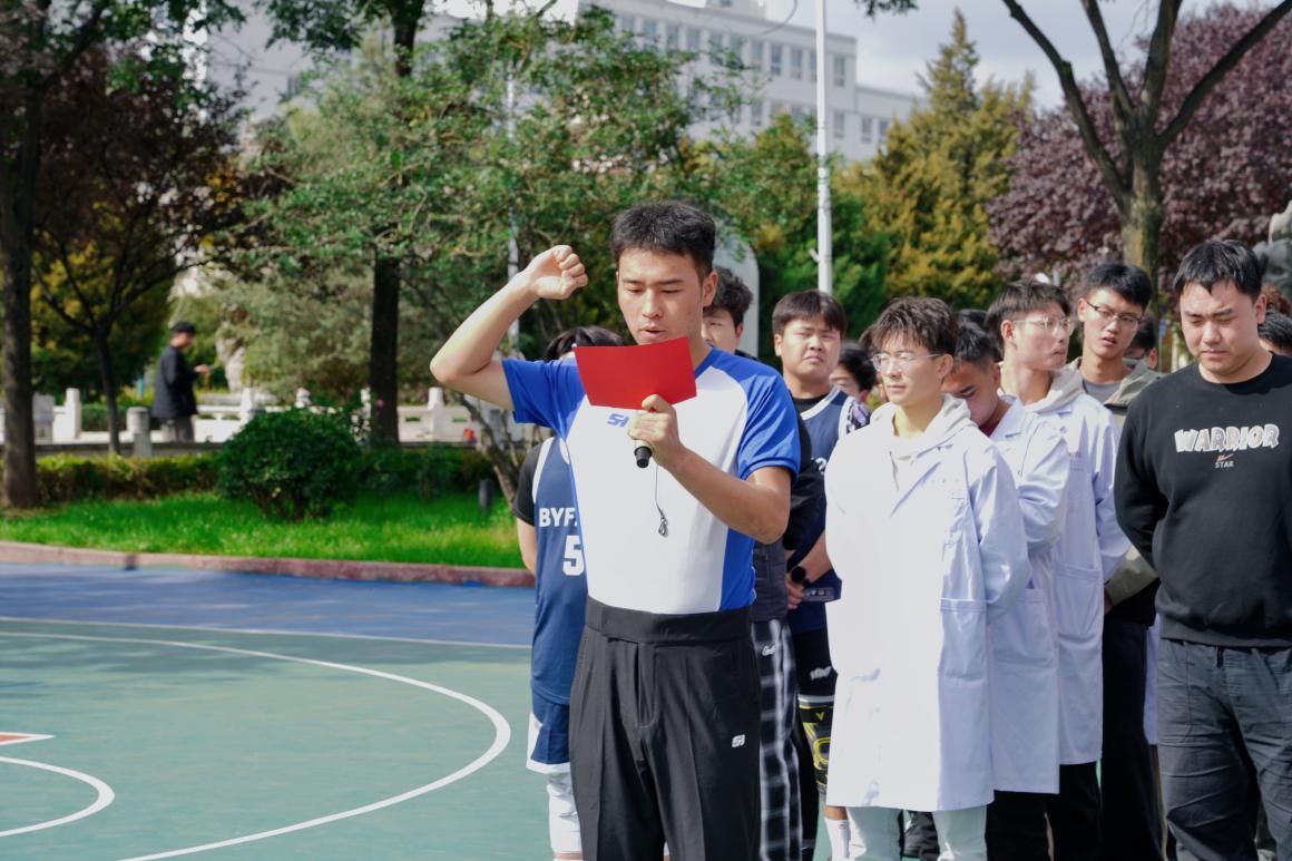 为丰富校园文化生活,增强学生体质,加强学风建设,促进学院学子间的交流与友谊,公共卫生学2025年“迎新杯”篮球赛于10月25日正午在学校篮球场正式拉开帷幕,院长李东禄、办公室主任路彬、教务科科长李静雅、教师张莹、辅导员郭紫薇参加开幕式。