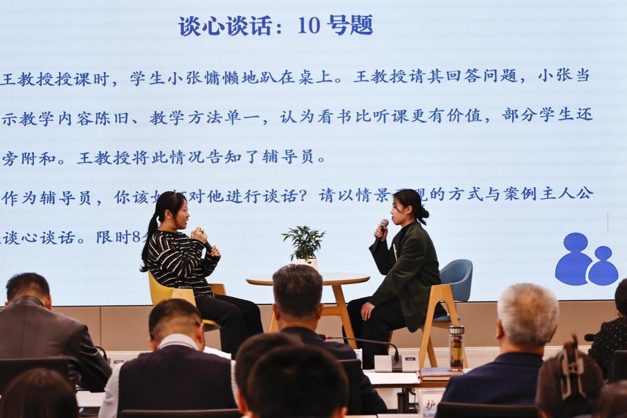 大赛决赛环节紧密围绕辅导员日常工作实际,设置了案例分析与谈心谈话两大实战模块,全面考察辅导员的综合素质和解决实际问题的能力。