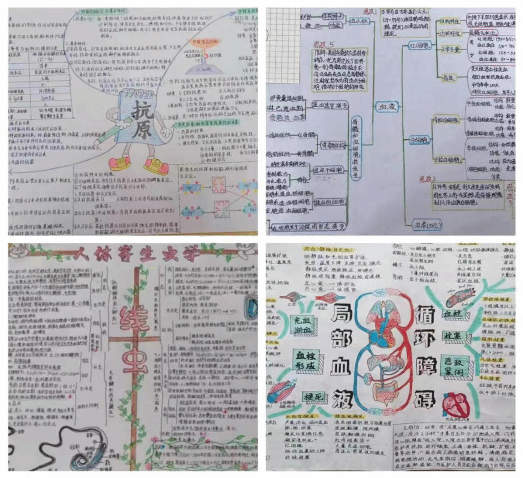 同学们创新性设计思维导图,用关键词理清重点内容,深入挖掘知识点,将抽象的医学知识与思政理念紧密相连,具体化、形象化设计思维导图,“画”出了个人的医学思维和学习思路。一幅幅构思精巧、色彩鲜艳、富于创意、充满趣味的思维导图,充分展现了同学们扎实的医学素养。