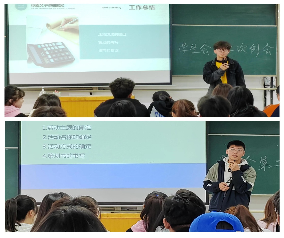 首先由学生会主席团成员对近期学生会活动进行评价总结,指出活动中存在的相关问题,他们将自身经验与实际活动相结合,从活动前期策划案的书写、活动过程中组织人员的调配和对特殊情况的处理,以及后期活动总结与新闻稿的撰写等方面给大家做了交流分享。倡导新一届学生会成员要明确定位,增强团队意识、标准意识,从集体中汲取力量,在活动中提升自我。