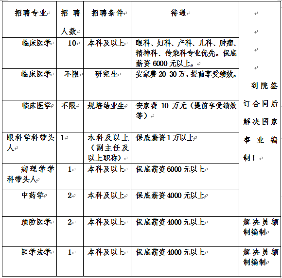 医院一直实行“人才强院”战略,最近几年来,医疗业务不断增加,在人才引进和人才培养上不断加强。医院急需以下专业人才,望有志之士前来咨询,期待你的加入。