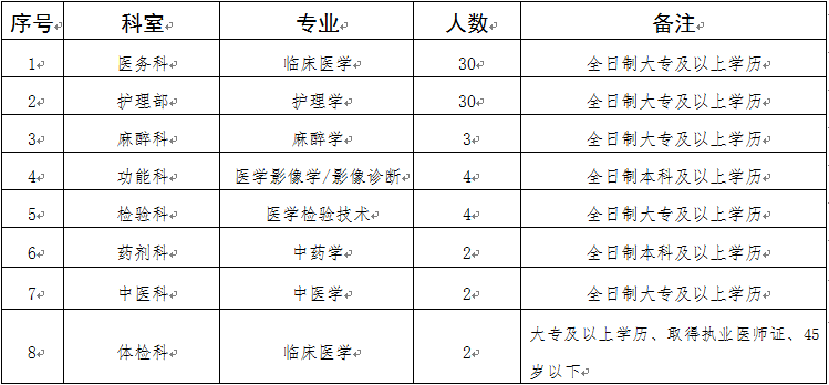 医院因业务发展和学科建设需要,现面向社会招聘工作人员若干名,具体岗位如下: