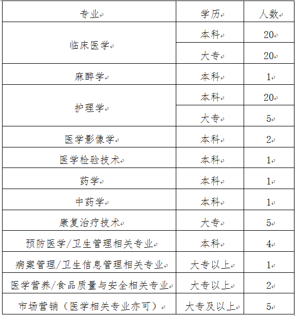 因医院发展需要,现招聘下列专业毕业生: