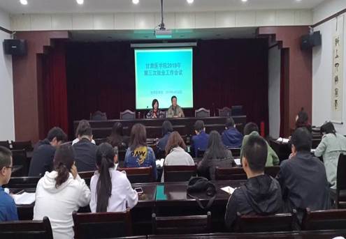 2019年4月28日上午10点,招生就业处处长周凤娟主持召开了甘肃医学院2019年第三次就业工作会议。学院副书记、副院长崔安平、各系负责人、就业专干、毕业班班主任、招就处全体人员参加了本次会议。
