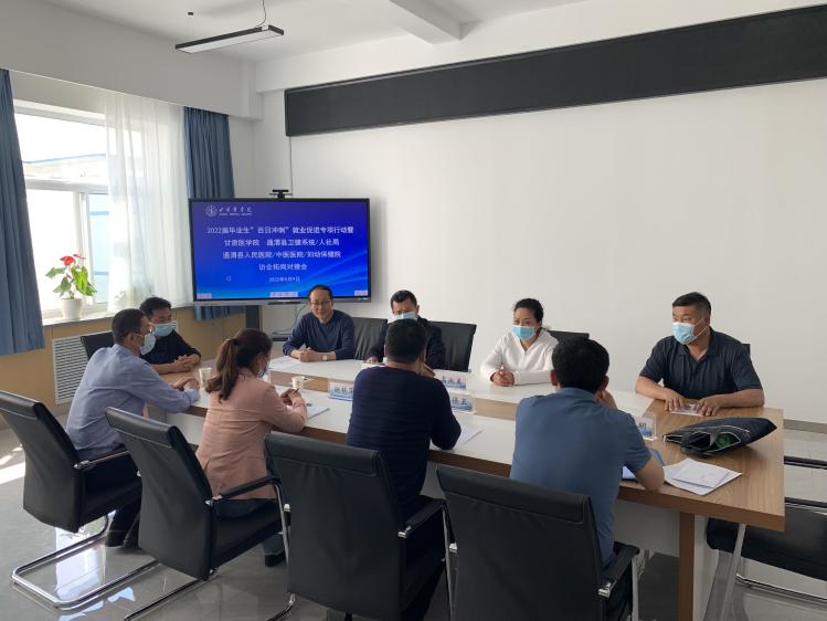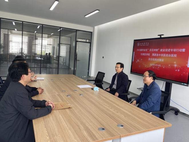 5月9日高书记和雷院长与通渭县人社局、通渭县卫生健康局、通渭县人民医院、通渭县中医医院、通渭县妇幼保健院进行了对接座谈,招生就业处与临床医学系领导参会。高书记向各用人单位传达了访企拓岗专项行动的重要意义,简要介绍了学院的发展历史,重点介绍了2022届毕业生的基本情况,希望能为各单位输送更多优质人才,同时就进一步加强校企合作、学生实习就业等事宜进行了深入交流。参加了本次走访活动。座谈会后,各单位对拟录取学生进行师生访谈和查阅档案等工作,充分肯定学院办学和人才培养。
