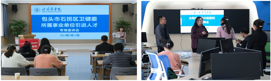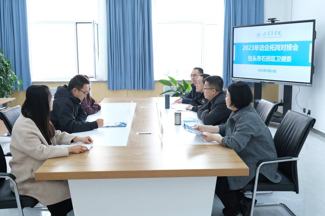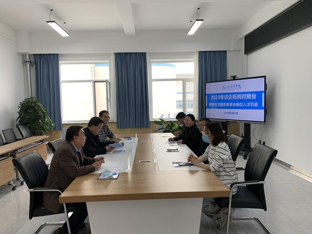 期间,学校纪委书记杨建福、学生工作部(处)部长朱天荣、临床医学系学生科科长李沛分别于与包头市石拐区卫健局、敦煌市卫健局招聘负责人进行了访企拓岗专题座谈交流,双方围绕专业设置、人才培养、用人需求以及毕业生就业指导等进行了详细交流。
