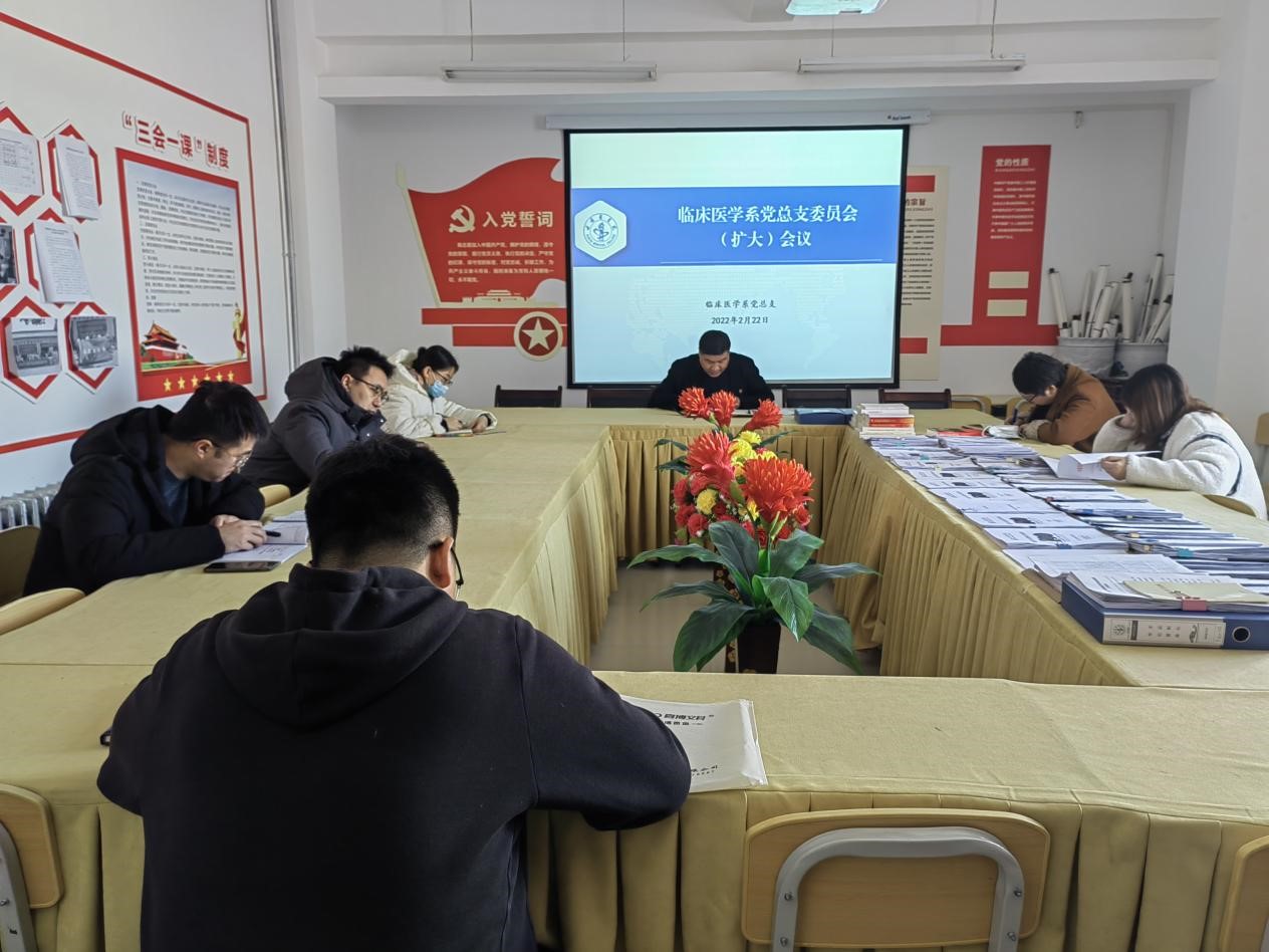 2月22日上午,临床医学系党总支在党团活动室召开党总支委员会(扩大)会议,总支委员,各支部书记、教工支部委员参会。会议由临床医学系党总支书记李宝成同志主持,会上传达学习了习近平同志在十九届中央纪委六次全会上的重要讲话精神、尹弘同志在十三届甘肃省纪委六次全会上的讲话精神以及两个重要会议的公报。
