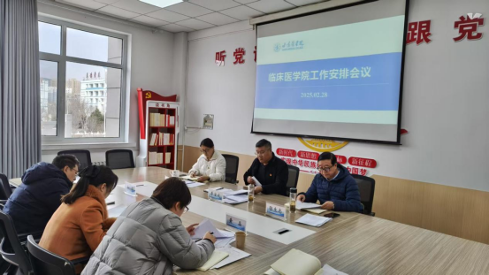 2025年2月28日上午,临床医学院召开新学期部门工作推进会,统筹安排部署新学期党建、教学、科研及学生管理等重点工作。会议由临床医学院党总支书记、附属医院党委副书记李宝成同志主持,学院院长张生志,副院长戴慧、及综合科、教务科、学生科等科室负责人参会。
