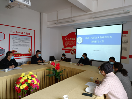 2022年3月28日下午,院长王坤同志一行深入临床医学系调研指导工作,学院办公室主任练成同志陪同调研。临床医学系教学及学生管理工作人员参加了调研工作座谈会。