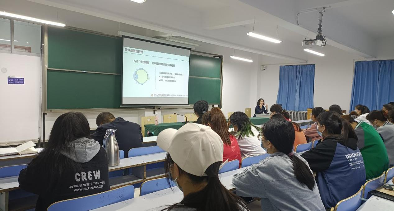 此次座谈中,杜婉丽专家对同学们介绍了眼科常见病咨询、筛查、问诊和健康教育等,为同学们普及了眼科医学常识和健康知识,倡导同学们健康生活,引导同学们科学用眼,保护视力。