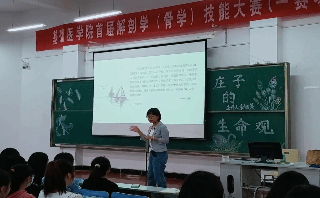 2022年5月26日16点30分,甘肃医学院临床医学系国学社讲座“庄子的生命观”在一号教学楼第二大教举行,秦帼英老师侃侃而谈,娓娓道来其中特点,在17点40分,伴随在雷鸣般的掌声中讲座圆满落下帷幕。