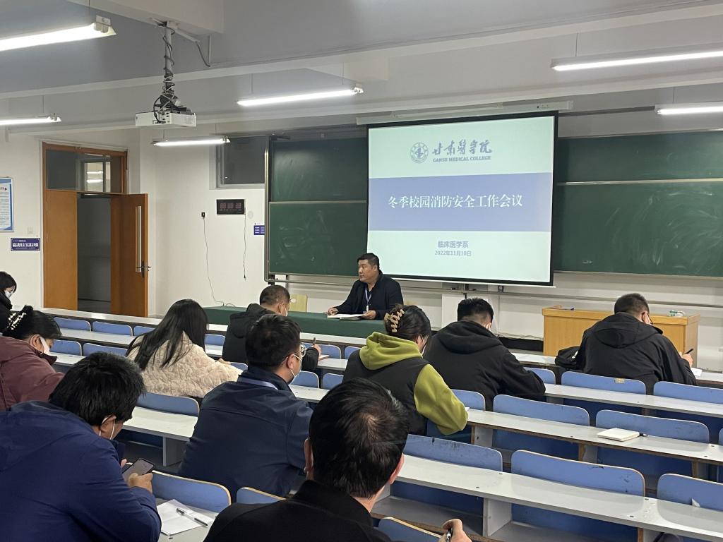 会议传达了国务院、省、市、学院安全工作会议精神及《甘肃医学院关于进一步加强校园冬季消防安全工作的通知》文件要求,组织学习了学院党委书记高淑美同志在学院消防宣传周启动仪式暨冬季校园消防安全工作会议上的讲话,并安排了近期疫情防控工作相关事宜。