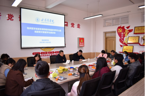 12月26日下午,临床医学系组织开展临夏州积石山县受灾家庭学生慰问座谈会,甘肃医学院党委委员、副院长雷鹏举同志出席并讲话,临床医学系负责人李蕾、李宝成,临床医学系临夏州积石山县受灾家庭学生和班主任参加会议。