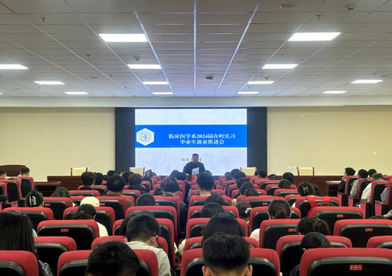 2024年3月11日晚,甘肃医学院临床医学系召开了2024届在崆实习毕业生就业推进会,临床医学系党总支书记李宝成主持会议,2024届临床本科、儿科本科共200余人参加会议。此次座谈会旨在进一步了解学生的就业情况并解答学生在就业过程中的疑惑,提出意见帮助学生尽早、尽快、尽好就业。
