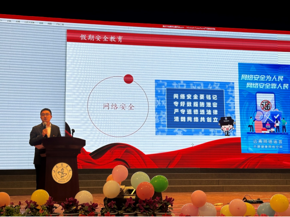 临床医学院学生科长从国庆节的由来、国庆节的意义、增强民族自豪感与爱国情怀和国庆节期间安全工作等方面对同学们进行了宣讲教育,引导学生要树立正确的价值观,培养正向的人生观,不断提高自身的学习力,认清当代青年肩负的历史使命,积极投身于国家建设的伟大事业,用实际行动为实现中华民族伟大复兴的中国梦而努力奋斗。教育同学们树立安全意识和底线思维,务必确保人身安全、财产安全、网络安全、食品安全和其他安全事项,做到高高兴兴回家去,平平安安返校来。