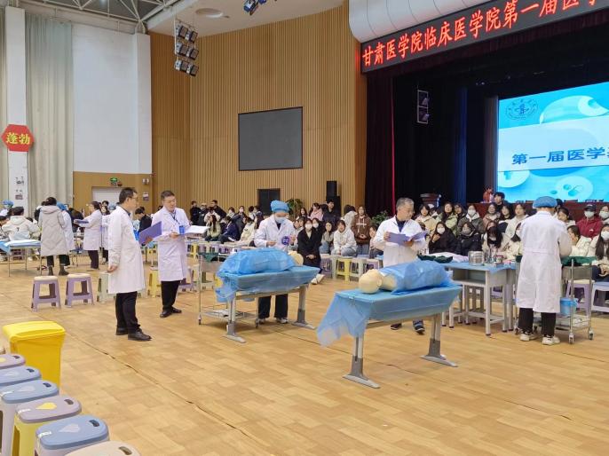 (二)进一步提升学生专业能力。12月7日下午,临床医学院在学校室内体育馆举办临床医学基础知识及技能大赛。本着以赛促学、以赛促教的目的,对于适应新时代需求的高素质医学人才具有重要意义。技能大赛不仅能够强化同学们的临床实践能力,更能在竞赛中感受医学的严谨与神圣,激发同学们对医学事业的热爱与追求。