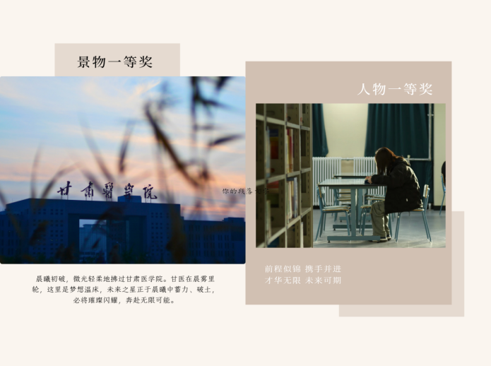 3.举办“冬韵”最美甘医摄影大赛。临床医学院面向全体师生征集作品,从学习日常到校园风光皆可入镜,大赛深挖校园魅力、定格冬影情长、提升审美素养,留存专属甘医的初冬绮梦,丰富校园文化锦缎,为校园文化艺术增添色彩。