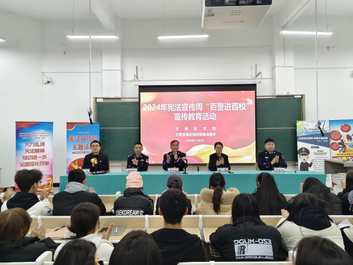 5.开展宪法宣传周普法系列活动。为全面加强学生法治教育,提升法治教育工作质效,根据学院开展2024年“宪法宣传周”活动安排,12月4日晚,临床医学院邀请甘肃省第四强制隔离戒毒所一行5人为学生开展专题法治讲座和普法系列活动,进一步增强了同学们的法治观念,提高了知毒、识毒、防毒、禁毒的意识,坚决抵制新型毒品侵害,自觉净化生活圈、交往圈,自觉远离毒品,共同营造平安和谐的校园环境。