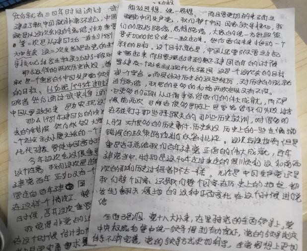 党的十九届六中全会全面总结中国共产党在过去百年间由一叶红船到如今巍巍巨轮的壮阔发展历史,号召我们充分汲取在前进与奋斗中涌现出来的宝贵经验,探寻成功秘诀背后的精神财富,激励我们有为向前、乘势而上。作为新一代有志青年,我们也定将坚持百年如一的初心,永担在肩使命,不忘来时路,继续传承中国共产党一心为民情怀,秉持艰苦奋斗的决心,不怕吃苦、不骄傲自满、不贪图安逸,始终保持守正创新、锐意进取、谦虚谨慎,将言行落实到具体行动,办好一件件小事,落实一项项任务。