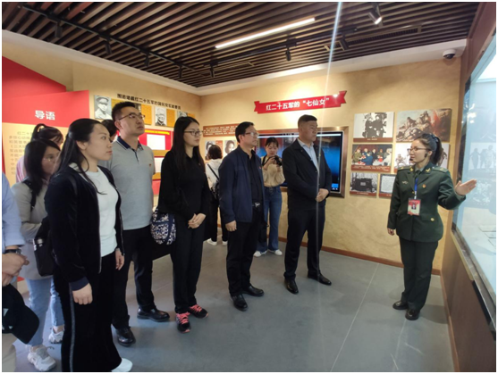 参观完纪念馆后,马克思主义学院院长董金玉同志对全体研学人员做了“学党史听党话跟党走”党史学习教育主题党课,他从红二十五军长征的故事讲到延安革命根据地,从新民主主义革命讲到改革开放的成就,从中国共产党的成立讲到百年大党风华正茂,从共和国的成立讲到中国特色社会主义发展的新时期新阶段新任务。他讲到缅怀先烈,学习人民英雄事迹,是对历史的回望,也是一次精神的洗礼。作为一名普通党员、思政课教师、辅导员,要争做缅怀革命先烈的楷模,传承红色基因的典范,在学党史中领悟精髓、掌握真谛,增添正能量,让初心融入血脉、把使命扛在肩头,要引领学生更加深刻地理解中国共产党为什么“能”,马克思主义为什么“行”、中国特色社会主义为什么“好”。他对学生党员讲到青年学生要倍加珍惜这个伟大的时代,不负韶华,珍惜光阴,时刻要牢记并践行,青春是用来奋斗的。