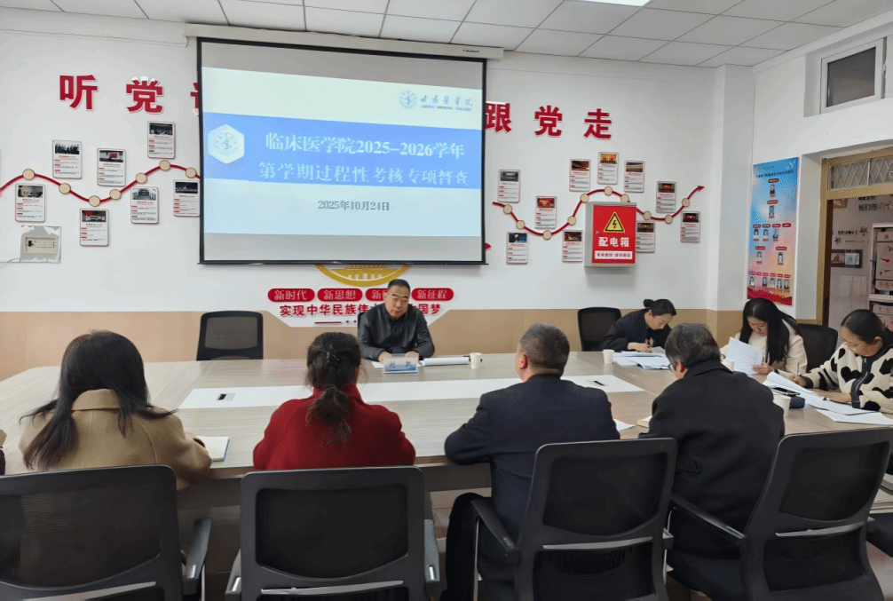 为强化医学教育过程管理,切实提升临床医学人才培养质量,2025年10月24日,由甘肃医学院副校长刘凯同志亲自带队,组织教务处各科室组成专项检查组,对临床医学院强化过程性考核的月考落实制度进行了专项督查工作。