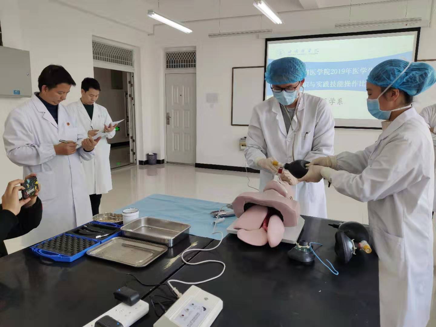 为进一步提高医学生的临床知识和临床技能,推进本科教育教学改革,搭建医学生展示交流的平台,提升临床实践教学整体水平,12月7日,根据学院统一安排,由临床医学系承办的首届医学生临床知识与临床技能比赛于2号实验楼内科实训室举行。2016级临床医学本科专业341名学生经过理论及基本操作初赛,最终44名同学脱颖而出参加了本次决赛。比赛分团体及个人赛,共3个比赛项目,分别为个人赛的气管插管术及胸腔穿刺术,团体赛的脊柱损伤急救与搬运。为了保证比赛的公正性及专业性,邀请了内科教研室及外科教研室资深临床专业课教师担任评委。