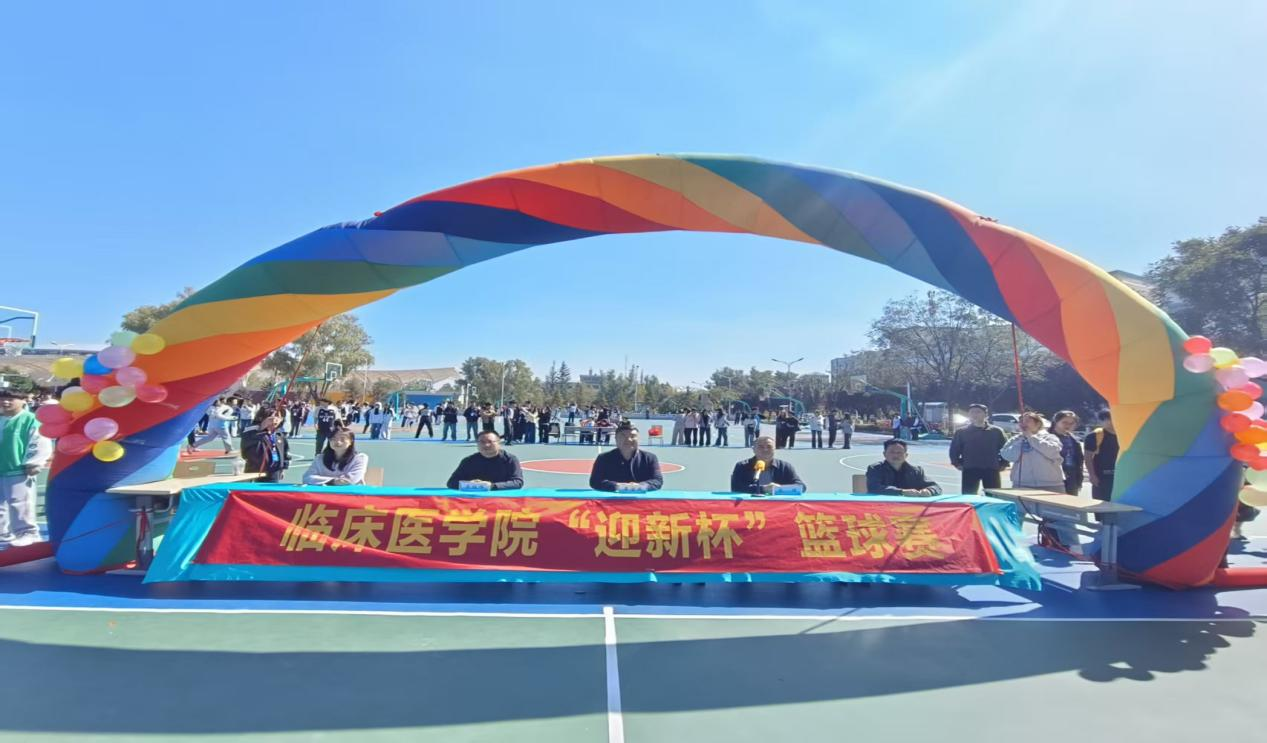 为丰富我院同学课余生活,促进新老生之间的交流,更好的开展体育活动,增强同学们的班级荣誉感和团队精神,展示我院学生的精神风貌。2025年10月13日中午,临床医学院“迎新杯”篮球系列比赛开幕式在一号篮球场隆重举行。临床医学院党总支书记李宝成、副书记副院长张伟、学生科长李红强及全体新生班主任参此次活动。在开幕式中,副书记副院长张伟老师发表了热情洋溢的致辞,并宣布临床医学院2025年“迎新杯”篮球赛开幕!为参赛选手们加油鼓劲。