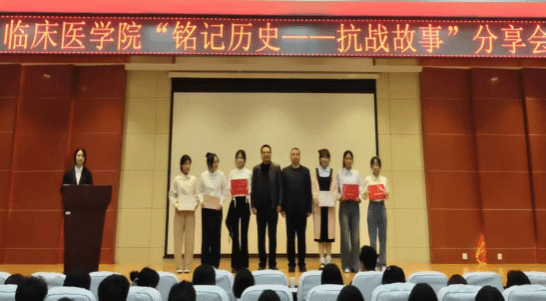 临床医学院党总支副书记副院长张伟,学生科副科长李红强及学院学生会主席团成员出席活动并担任评委。李彤、杨珂馨等6位同学依次登台,或追忆狼牙山五壮士、赵一曼等英雄的不屈事迹,或讲述“用生命接通3分钟”的动人故事,更以“不朽”“永不消失的歌声”为题诠释红色精神的时代价值。现场还穿插抗战歌曲演唱,激昂旋律点燃全场爱国热情。