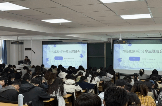 与此同时,学院各班级同步召开“抗战家书”分享主题班会。班会上,同学们通过诵读左权、赵一曼等革命先辈的抗战家书,结合历史背景解读字里行间的家国情怀与赤子之心,在一封封穿越时空的家书中,深刻感悟革命先辈舍小家为大家的奉献精神,让红色记忆在班级中落地生根。