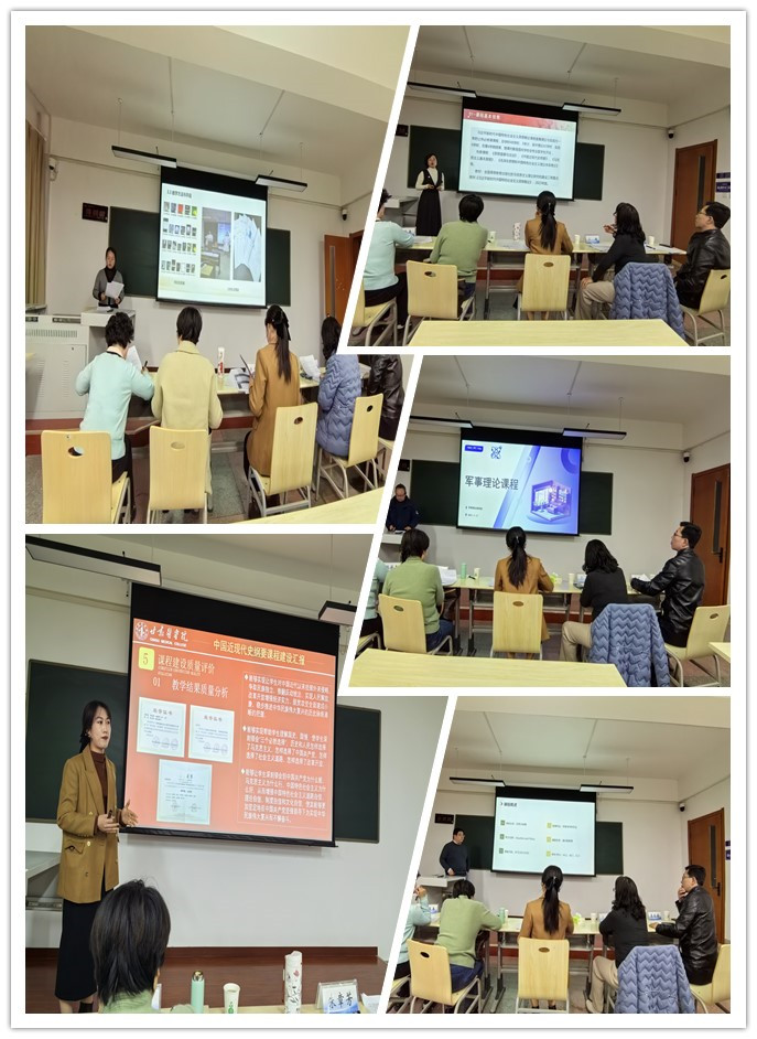 本轮评估涉及马克思主义基本原理、中国近现代史纲要、习近平新时代中国特色社会主义思想概论、军事理论、形势与政策共五门课程。评估汇报会上,评审专家组通过听课程负责人“说课程”,任课教师现场“说课”、查阅与课程相关的教学文档资料和建设成果佐证材料等方式对参评课程进行了认真细致、实事求是的评估,并提出中肯的指导意见。