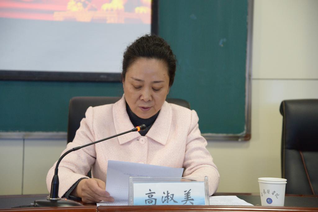 会上, 高淑美代表学院党委,从学院“不忘初心、牢记使命”主题教育的开展情况、收获成效,存在的问题及下一步打算作了全面细致的总结,同时强调,开展评估测评工作,是“不忘初心、牢记使命”主题教育的一项重要内容,评估工作的完成并不意味着主题教育的结束,各基层党组织要提高政治站位,持之以恒抓好主题教育各项后续工作,全面系统总结主题教育成效,努力形成一批实践成果、制度成果和理论成果。要巩固和扩大主题教育成果,紧密结合各自实际,充分运用主题教育取得的宝贵经验,切实把党的建设各项任务全面落到实处,以良好的作风推动学院发展各项工作上台阶。