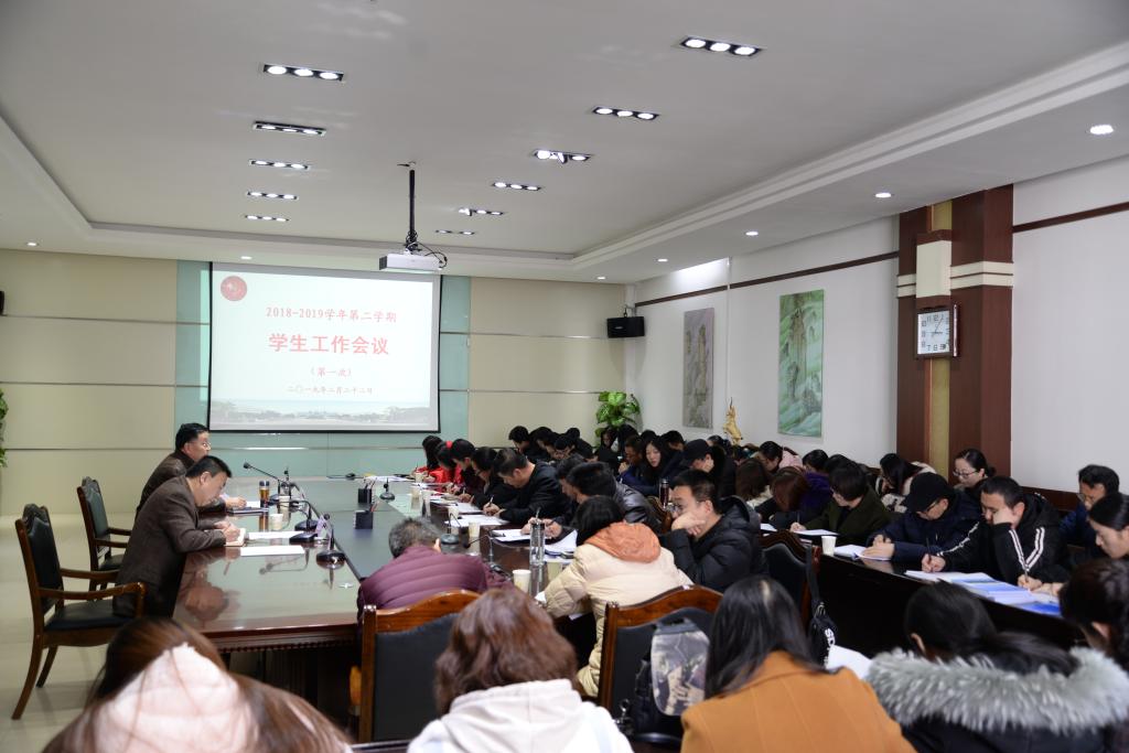 2月22日,学院召开2019年学生工作会议。会议的主题是总结经验谋划未来,坚持立德树人,践行四个回归,努力促进学生工作再上新台阶。会议由学生处负责人朱天荣主持。