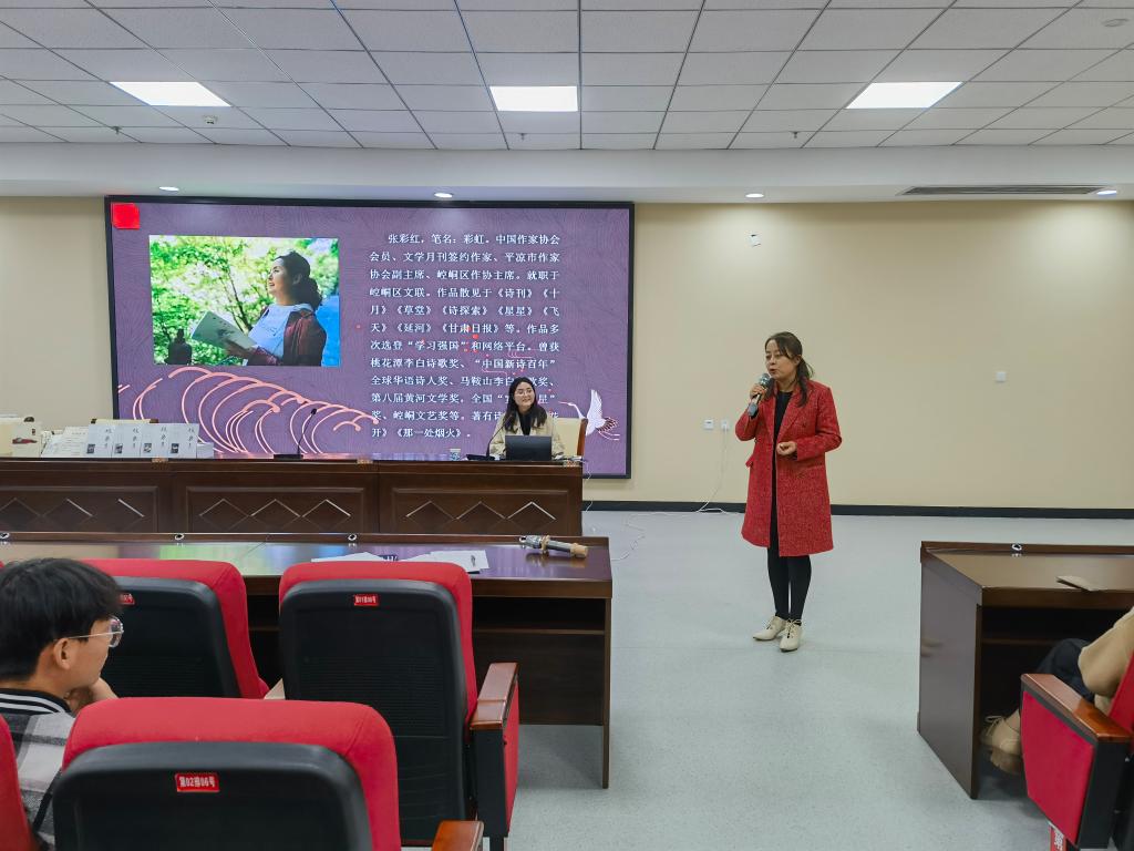 此次讲座的主题为“读书与做人”。读书与做人有什么关联?读书真的能改变命运吗?张彩红女士以自己的亲身经历回答了这两个问题。在她看来,读书与做人有着千丝万缕的联系,无论身处何时何地都要将读书放在第一位。整场讲座气氛融洽,平易生动,张女士谈了自己的写作经历以及如何走上写作之路,她说:“写作其实就是在表达自己,与自己对话。”写作和阅读对人的成长有很大的帮助。多读书可以解答生活中很多不解和疑惑,让人以更好的状态生活。读书可以带给人力量,勇敢地面对生活。张女士谈到,自己在日常生活中经常阅读,有些书甚至是反复多次阅读,从中获益良多。张女士与同学们在现场积极互动,品读诗歌,对同学们在写作和阅读中遇到的困惑给予耐心指导。她说,越读书,越谦逊,要和生活紧密联系起来,踏踏实实,像泥土一样匍匐在大地上。最后,张女士向图书馆捐赠了自己的诗集和期刊,并诚挚地邀请热爱文学的老师和同学们投稿。