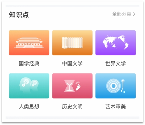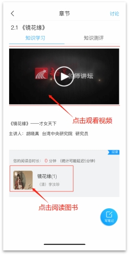(2)“知识点”栏目中,点开任一分类,浏览页面图书信息,再根据自己的需要在线阅读图书、观看导读视频或完成知识测评。