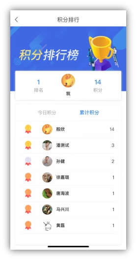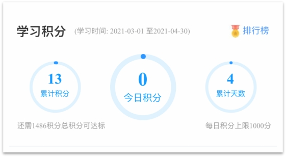 (3)“学习积分”栏,实时更新积分情况及排行榜信息。