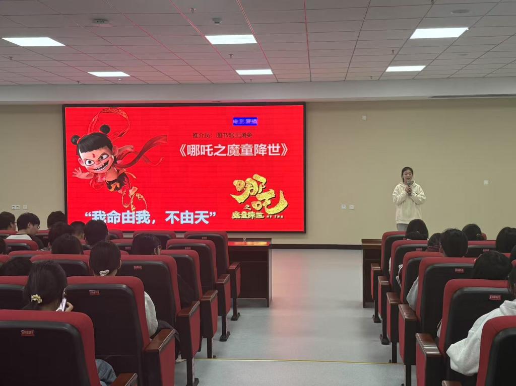 为丰富校园文化生活,弘扬中华优秀传统文化。4月11日下午,甘肃医学院2025年全民阅读系列活动之“电影展播”正式拉开帷幕,展播活动的首部电影《哪吒之魔童降世》在图书馆五楼一号学术报告厅放映,吸引了200余名学生前来观看。