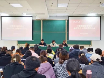 为全面贯彻落实《关于学联学生会工作人员改进作风服务同学的若干规定》、《关于推动高校学生会(研究生会)深化改革的若干意见》等相关文件精神,深入学习贯彻习近平总书记“七一”重要讲话精神,进一步提高我院青年学生干部的思想认识和履职能力,10月14日下午甘肃医学院团委于组织召开了2021年学生会组织工作人员秋季培训会,会议由院学生会秘书长曹娟老师主持,团委张月月老师、院学生会及各系(院)全体工作人员共计近200人参加了本次会议。